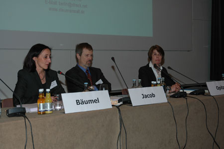 Frau Rechtsanwältin Kirsten Bäumel, Rechtsanwalt und Steuerberater Friedhelm Jacob, Helga Opitz, Vorsitzende Richterin am Finanzgericht Köln